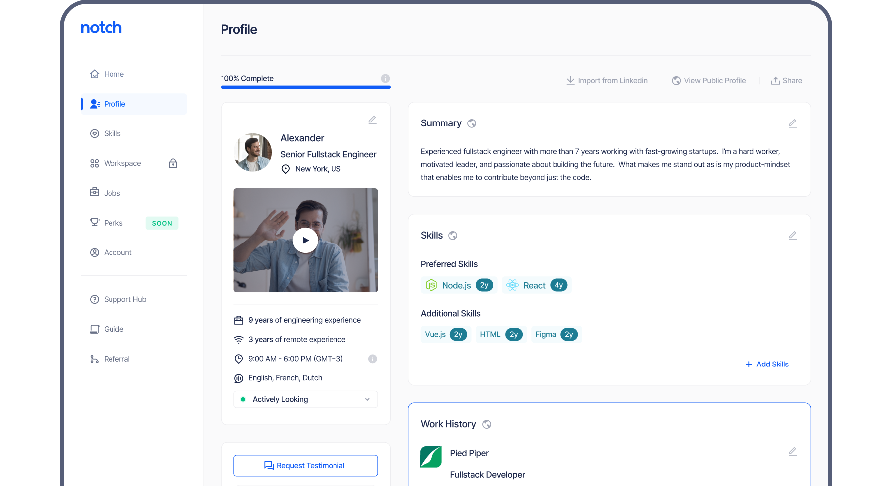 Notch developer profiles let you stand out within our platform and anywhere else you share